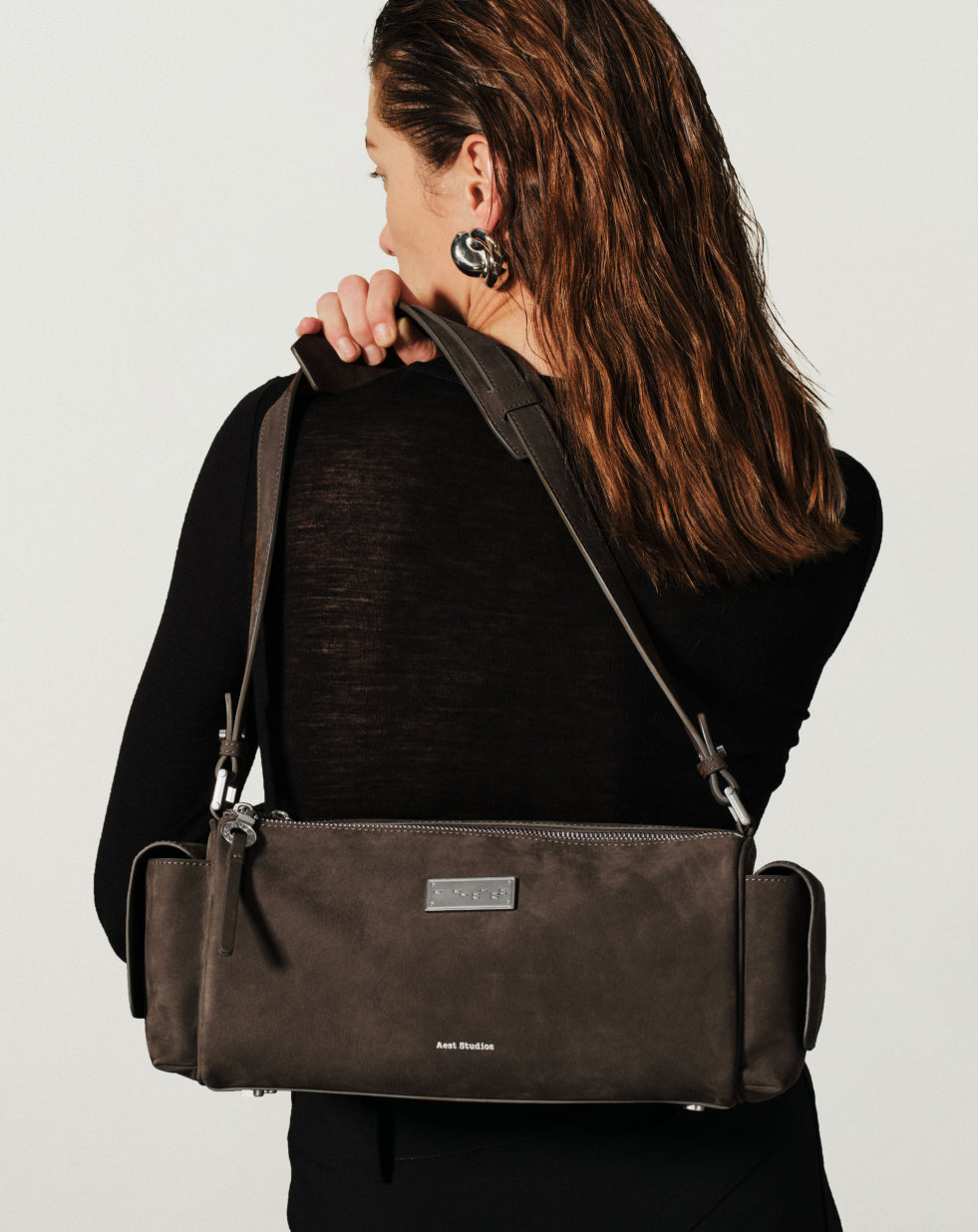 - Matte silver metal plaque with embossed Aest Stuidos logo