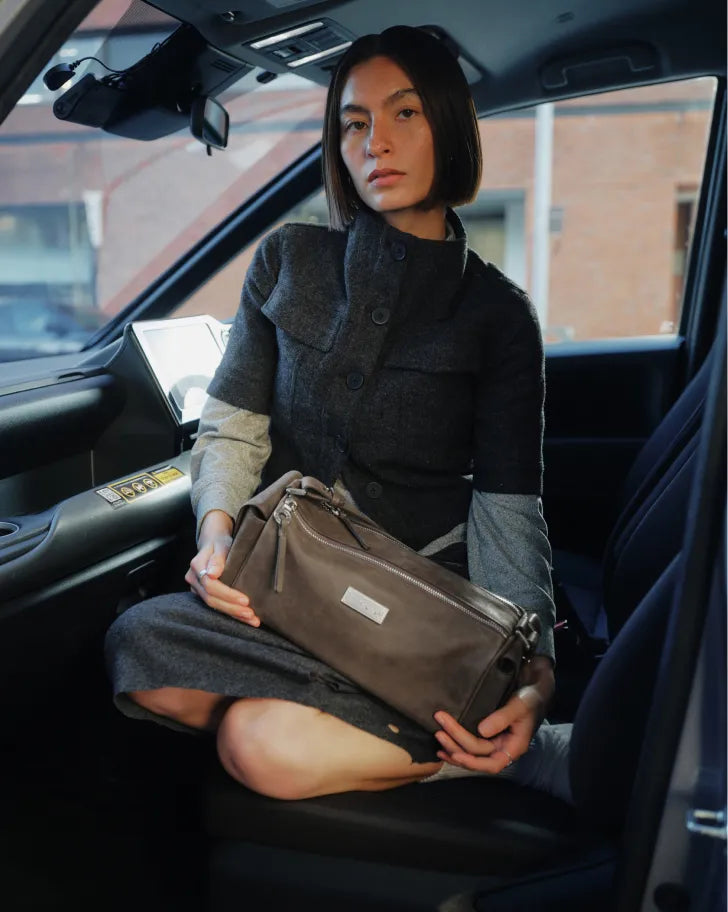Because the leather is treated with minimal coating, the grain remains in its raw state, resulting in natural variation — both from bag to bag and across different areas of the same piece.